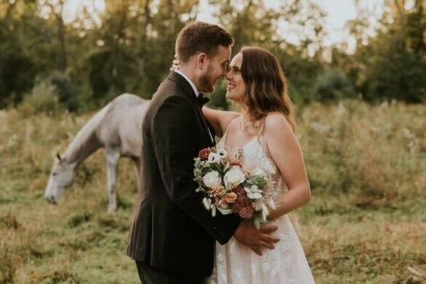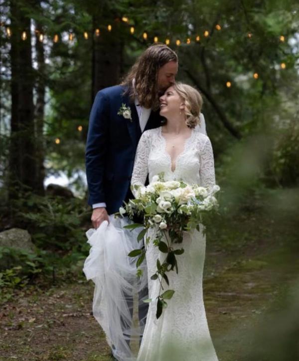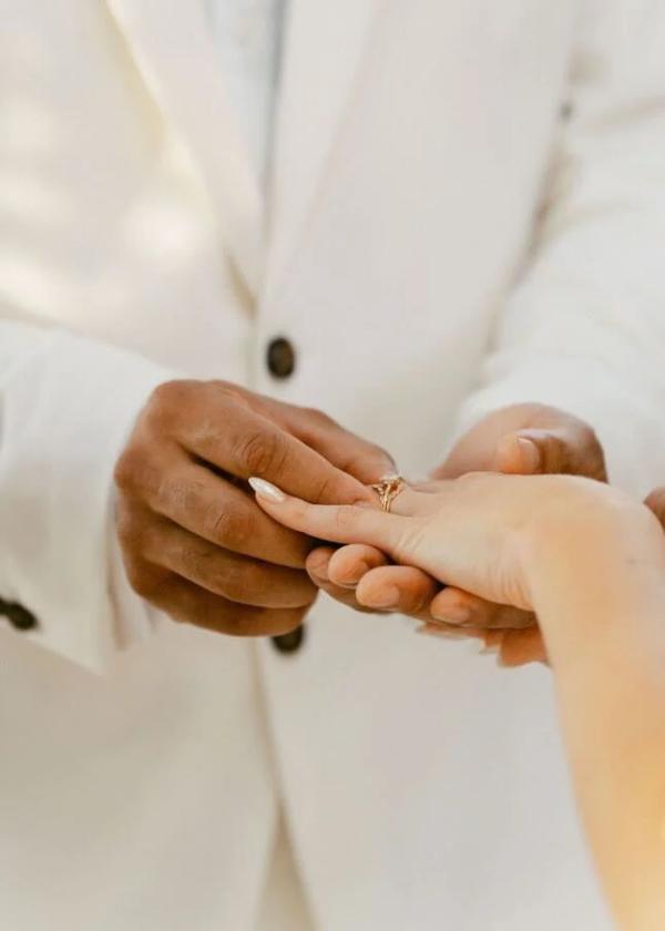 alexandra + brock is wearing muskoka sunsets one-of-a-kind ring