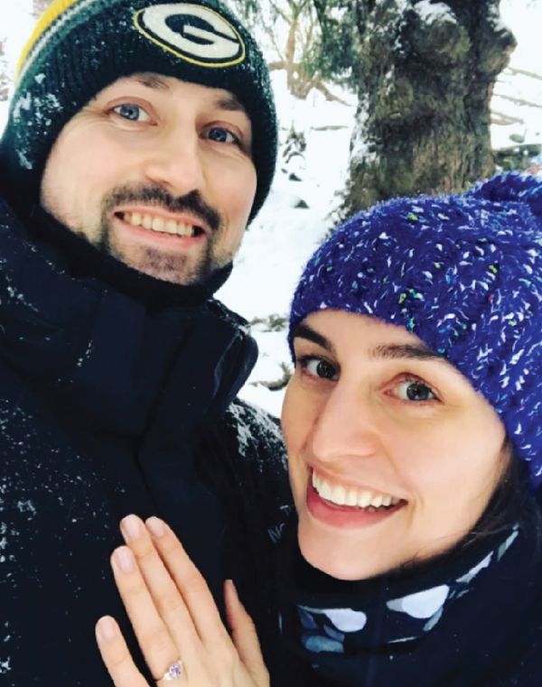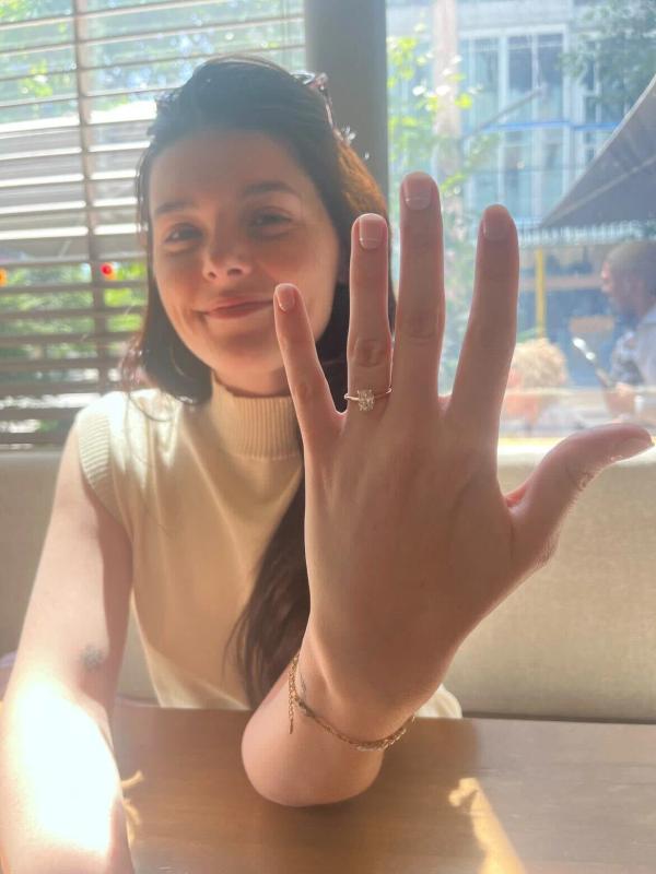 emily & scott is wearing a diamond one-of-a-kind engagement ring
