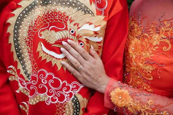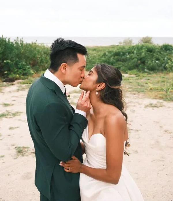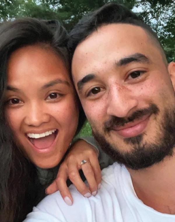 oshani & quang is wearing a cushion one-of-a-kind engagement ring