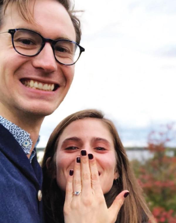 helen & aaron is wearing a one-of-a-kind engagement ring