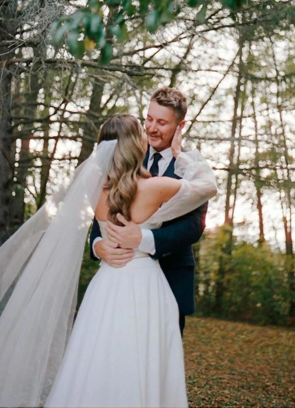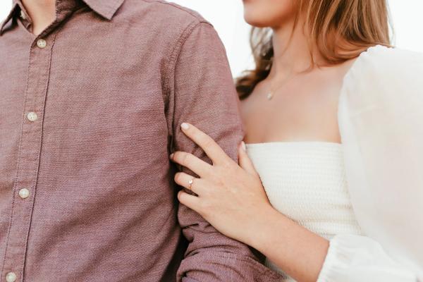 kaylee is wearing a one-of-a-kind engagement ring and beloved wedding band and james is wearing a beloved wedding band