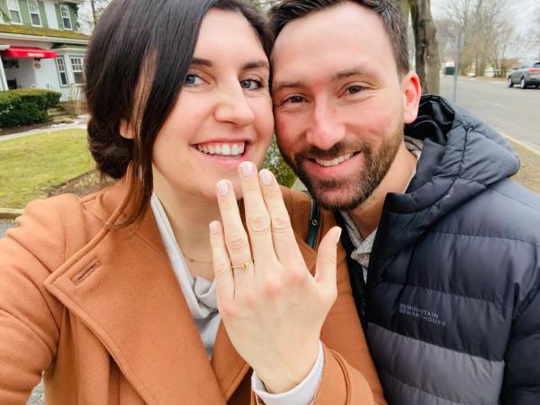 robyn and steven is wearing lovers moon one-of-a-kind engagement ring