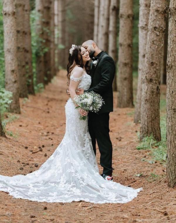 chelsea is wearing an endless beloved engagement ring and michael is wearing a bluboho beloved band