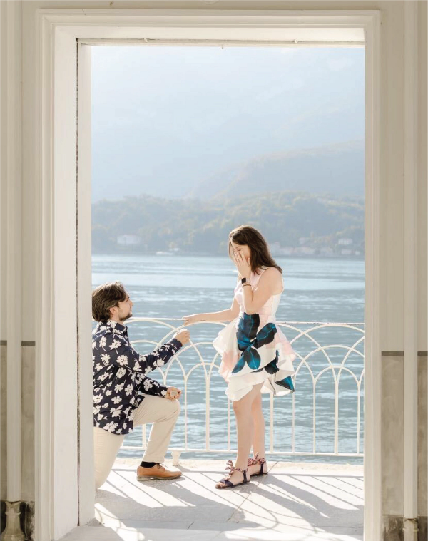 sapphires have always resonated with lexy as it’s her birthstone and she grew up coveting her mother’s sapphire engagement ring. adam picked a one-of-a-kind artist cut sapphire called Adventurous Spirit, which paired perfectly with his proposal. he proposed on lake como, and the vivid teal colours of the lake beautifully complimented the hue of her new sapphire heirloom