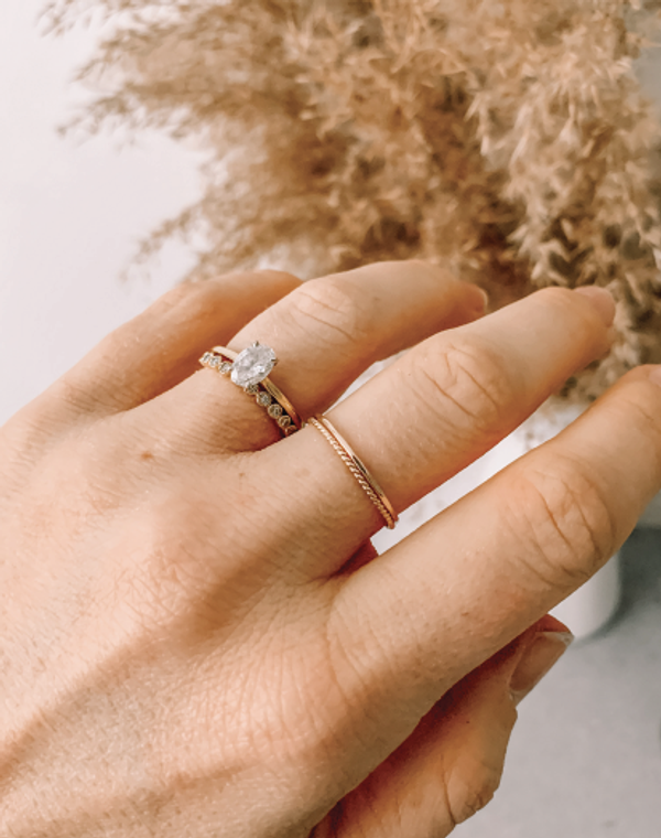 what drew me to this ring was how dainty it was. I’m always wearing the twisted sister and the faceted felicity stacking rings together, so i wanted something that would play off those. after visiting the store and speaking with someone who worked there, we tried on a few options and then decided this was the ring for me. it fits perfectly beside my engagement ring and complements it beautifully. i love how it looks on its own as well.
