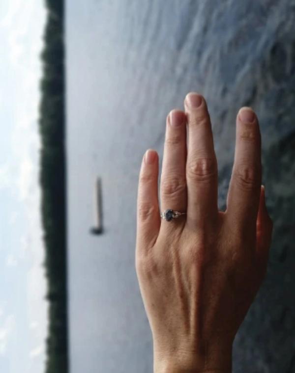 my fiancé proposed to me with the white sapphire engagement ring at the top of a volcano in the Azores. it was the most wonderful day of my life. the ring is absolutely stunning and beautiful. I can’t believe he found such a beautiful ring, and from a local business. it reminds me everyday that even though it took a while to find one another, I knew it was Alex from the moment we met. As if the universe finally said “yes, it’s time"