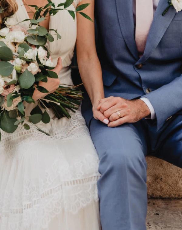 maggie(bluboho owner) is wearing matching gold everlast wedding band and drew is wearing matching gold everlast wedding band